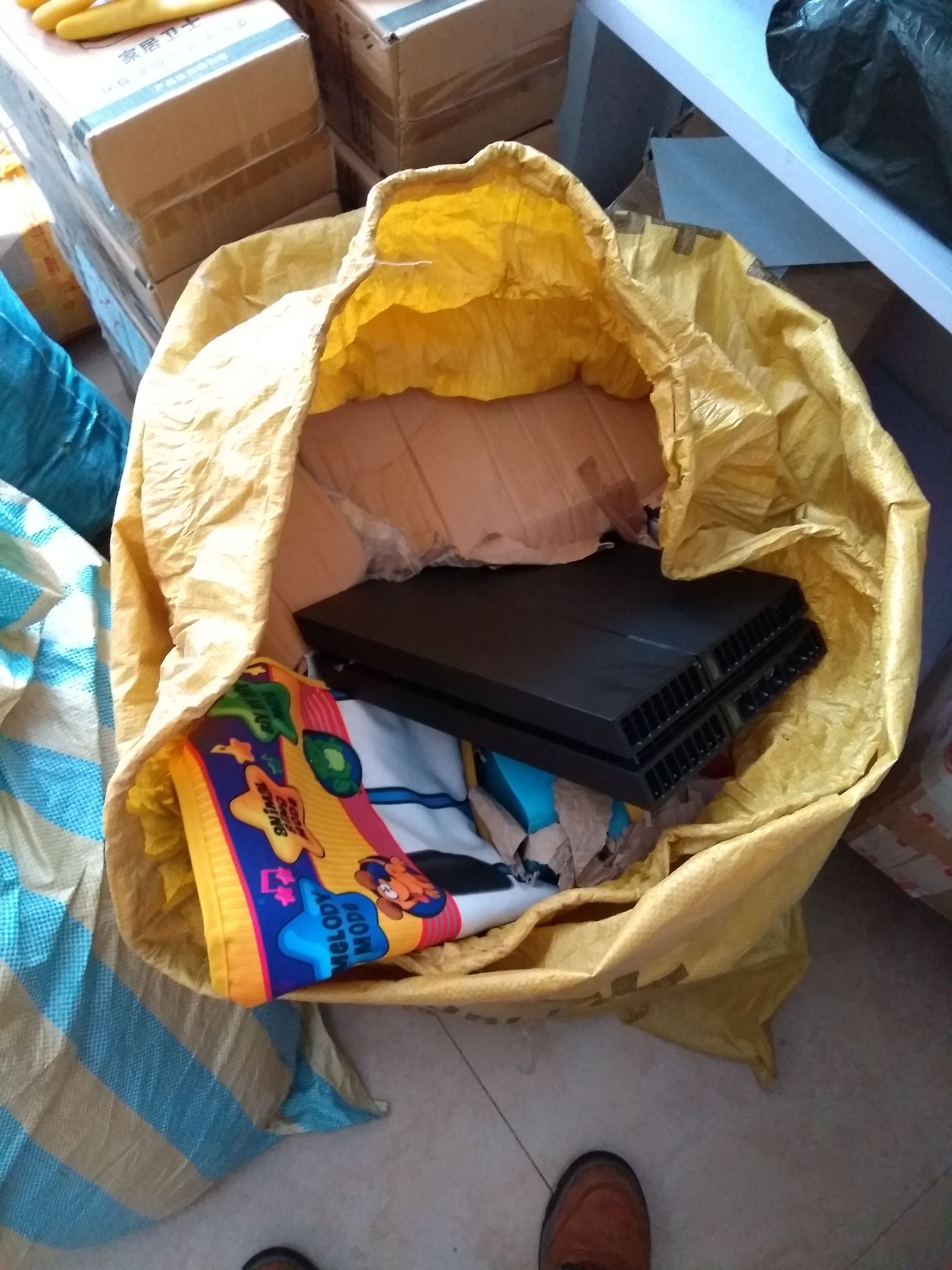 The boxes had collapsed andour possessions had been smooshed into a big burlap bag. Not great but…well at least we got our stuff here!