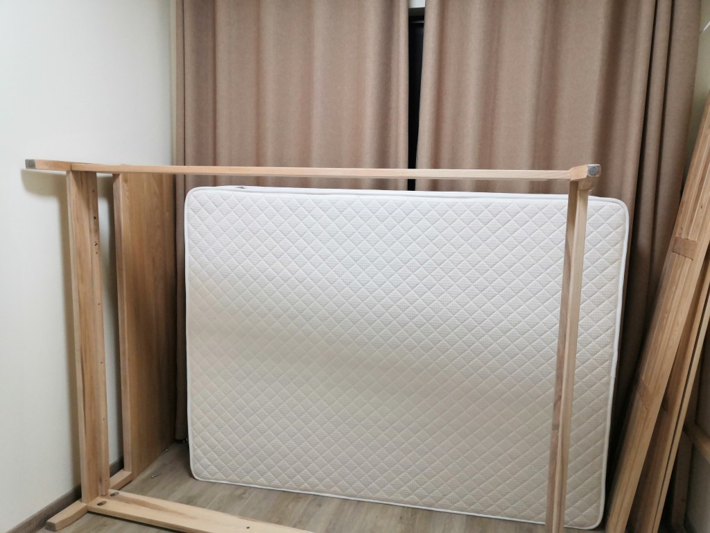 I disassembled it partially then flipped it up so that Hector could have a bit more room in his room. Our bedroom is about 40% larger than our old one and we even got an en-suite bathroom. With decidedly, no bath. Which is unfortunate. I am told.